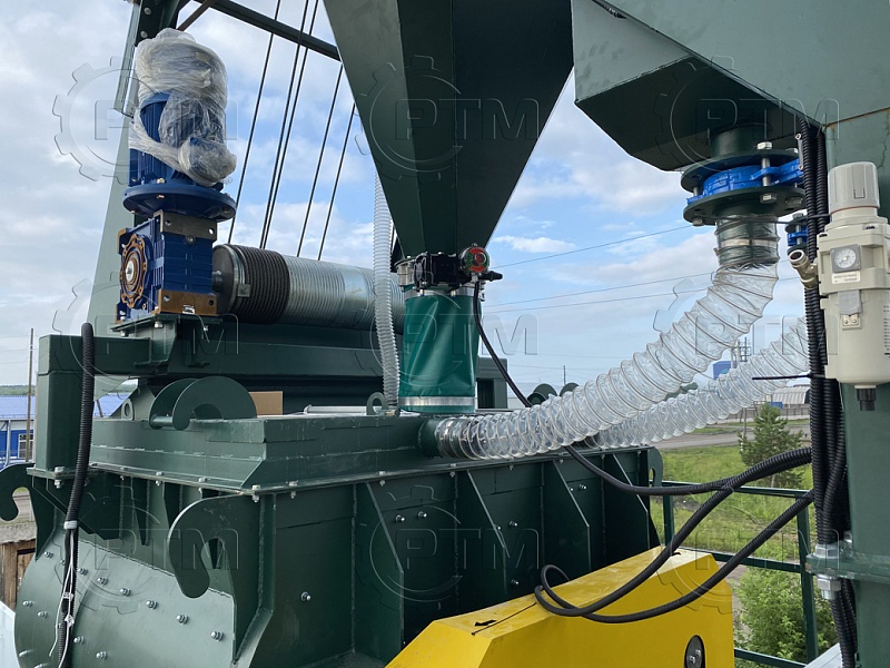 6. Выгрузка бетона: выгрузка бетонной смеси происходит через окно в днище бетоносмесителя, заслонка бетоносмесителя открывается с помощью пневмопривода, по желанию заказчика может быть установлена гидрозаслонка.
