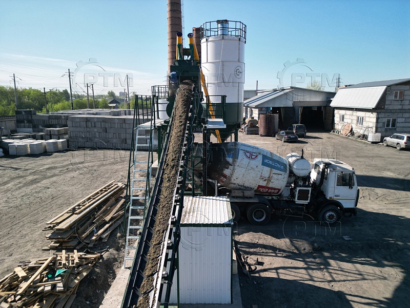 Ленточный конвейер имеет рамную конструкцию с фермами. В нижней и верхней части ленточного конвейера устанавливаются барабаны с футеровкой, ведущий барабан приводится в движение при помощи червячного мотор-редуктора. Конвейерная лента шевронная закрытого типа. В нижней части конвейера имеется приемный бункер, конвейер имеет от бортовку, это необходимо чтобы инертные материалы не просыпались с ленточного конвейера при транспортировки инертных материалов в бетоносмеситель. Все конвейерные ролики оцинкованные.