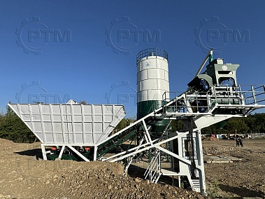 Данный завод производительность от 40 до 55 м3/час товарного бетона марки м200 или раствора. Объём загрузки бетоносмесителя 1200 литров, объем выгрузки готового бетона 800 литров. Один цикл не более 55 секунд. Время работы цикла регулируется оператором бетонного завода.