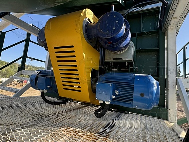 1. Дозирующий комплекс ДРКМ-40 (4 секции по 10 м3): состоит из двух до четырех бункеров для хранения инертных материалов (щебень, песок, отсев). На каждом бункере имеется два пневмо- затвора, необходимых для точной дозации материалов. При дозировании материалы попадают на весовой ленточный конвейер, весовые датчики фирмы CAS Ю. Корея, при наборе нужного количества материалов, заслонки закрываются, подача прекращается. Каждый бункер оснащен вибродвигателем MVE 300/3.