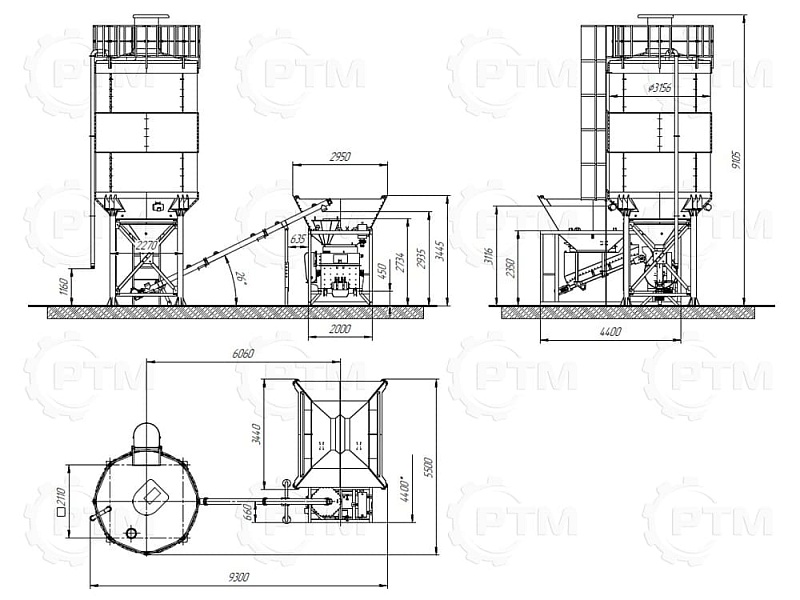 Данный завод производительность от 15 до 20 м3/час товарного бетона марки м200 или раствора. Объём загрузки бетоносмесителя 500 литров, объем выгрузки готового бетона 300 литров. Один цикл не более 55 секунд. Время работы цикла регулируется оператором бетонного завода.