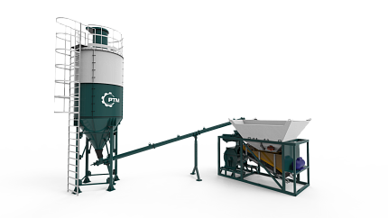 5. Склад цемента и подача в блок дозаторов. При необходимости завод комплектуется складом цемента (силосом или расстаривателем биг бэгов). Силос или расстариватель биг бэгов (опция) необходим для хранения цемента и различных сухих смесей. Транспортировка из силоса происходит с помощью шнекового конвейера. Силос необходимо подбирать из расчета трехдневного запаса цемента.
