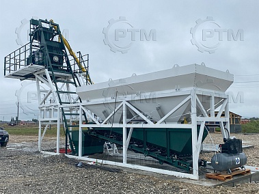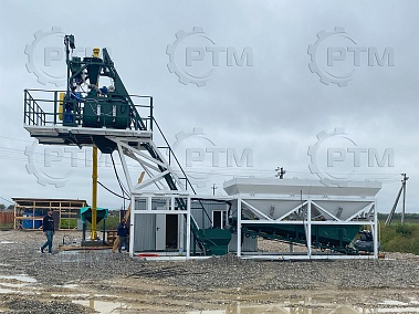 Данный завод производительность от 20 до 30 м3/час товарного бетона марки м200 или раствора. Объём загрузки бетоносмесителя 900 литров, объем выгрузки готового бетона 500 литров. Один цикл не более 55 секунд. Время работы цикла регулируется оператором бетонного завода.