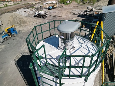 Силос цемента предназначен для хранения цемента на площадке. Силос принимает цемент по трубе закачки от цементовоза, сохраняет его от внешних воздействий. Далее цемент подается при помощи шнекового конвейера на блок дозаторов. На блоке дозаторов взвешивается и попадает в производственный цикл бетона на бетонном заводе.