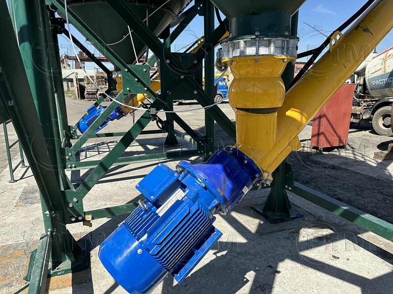 Силос цемента предназначен для хранения цемента на площадке. Силос принимает цемент по трубе закачки от цементовоза, сохраняет его от внешних воздействий. Далее цемент подается при помощи шнекового конвейера на блок дозаторов. На блоке дозаторов взвешивается и попадает в производственный цикл бетона на бетонном заводе.