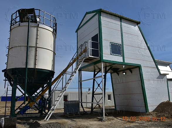 Данный завод производительность от 6 до 10 м3/час товарного бетона марки м200 или раствора. Объём загрузки бетоносмесителя 500 литров, объем выгрузки готового бетона 300 литров. Один цикл не более 55 секунд. Время работы цикла регулируется оператором бетонного завода.