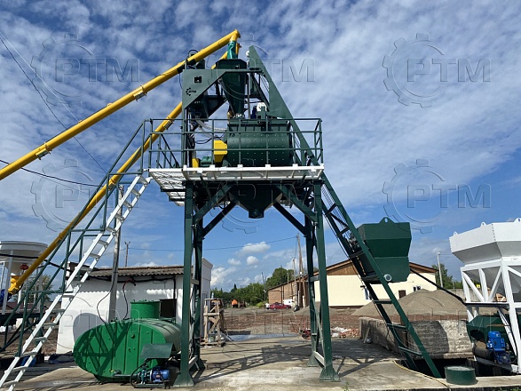 Данный завод производительность от 45 до 60 м3/час товарного бетона марки м200 или раствора. Объём загрузки бетоносмесителя 1500 литров, объем выгрузки готового бетона 1000 литров. Один цикл не более 55 секунд. Время работы цикла регулируется оператором бетонного завода.