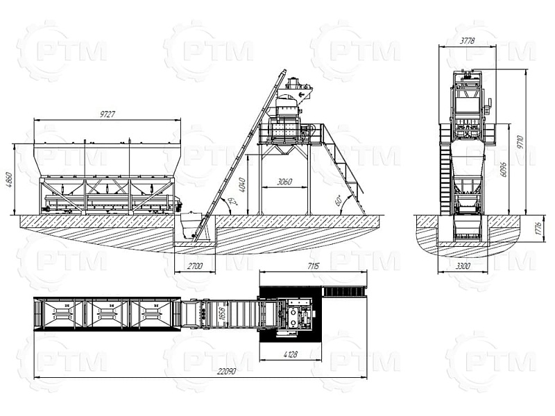 Скиповый бетонный завод с двухвальным бетоносмесителем — это производственное оборудование, которое используется для смешивания и производства бетонной смеси с высокой производительностью и качеством, завод автоматический, принцип “одна кнопка” Он состоит из следующих основных компонентов: