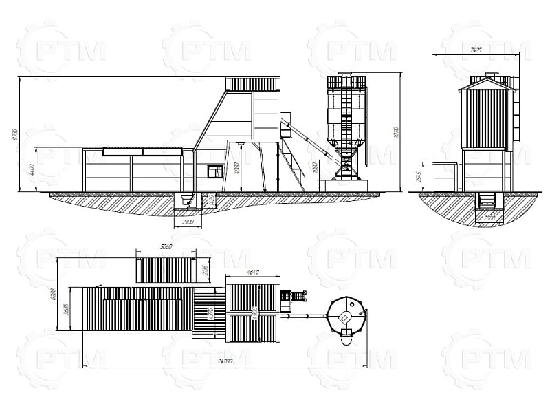 Данный завод производительность от 20 до 30 м3/час товарного бетона марки м200 или раствора. Объём загрузки бетоносмесителя 750 литров, объем выгрузки готового бетона 500 литров. Один цикл не более 55 секунд. Время работы цикла регулируется оператором бетонного завода.
